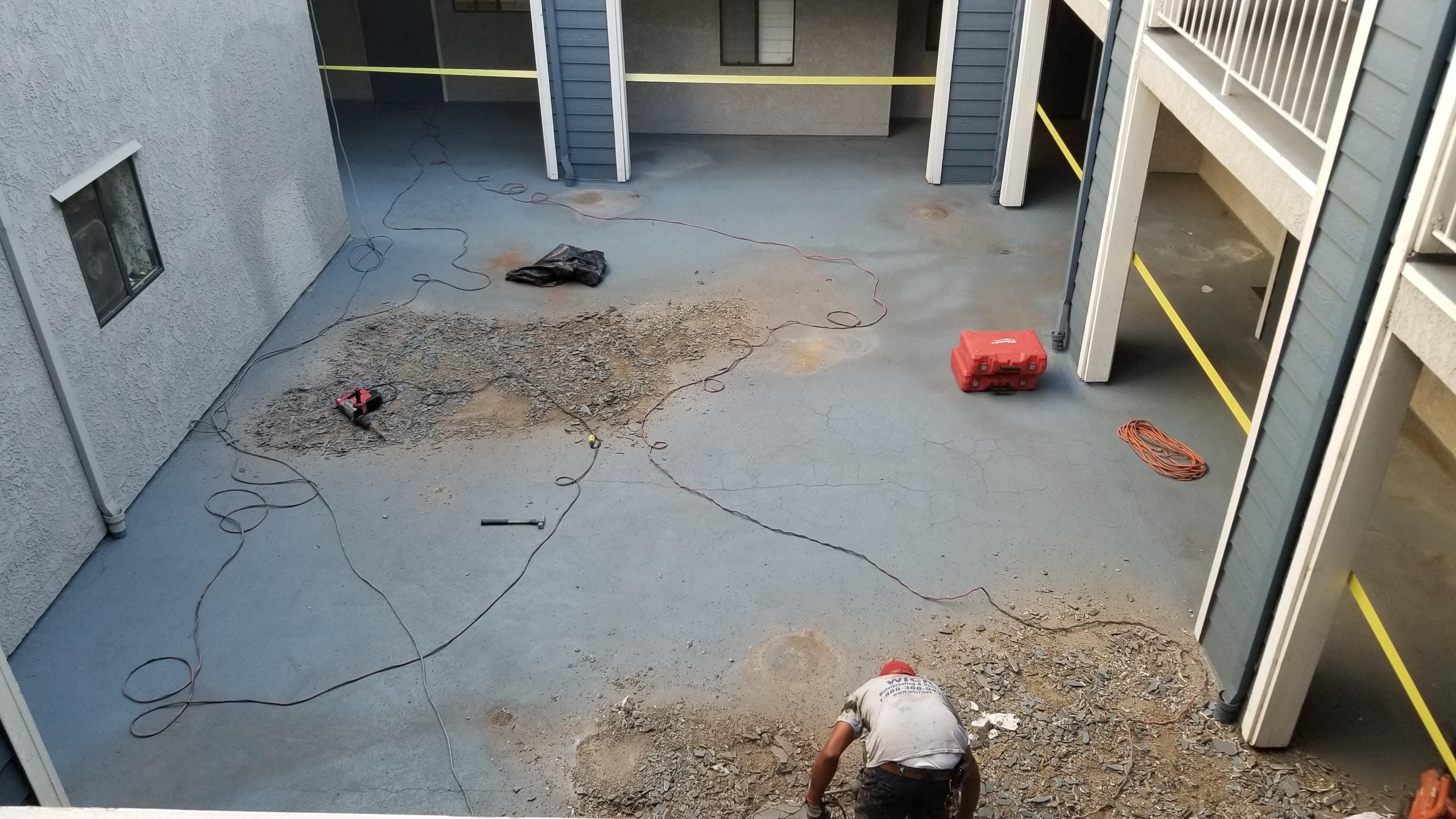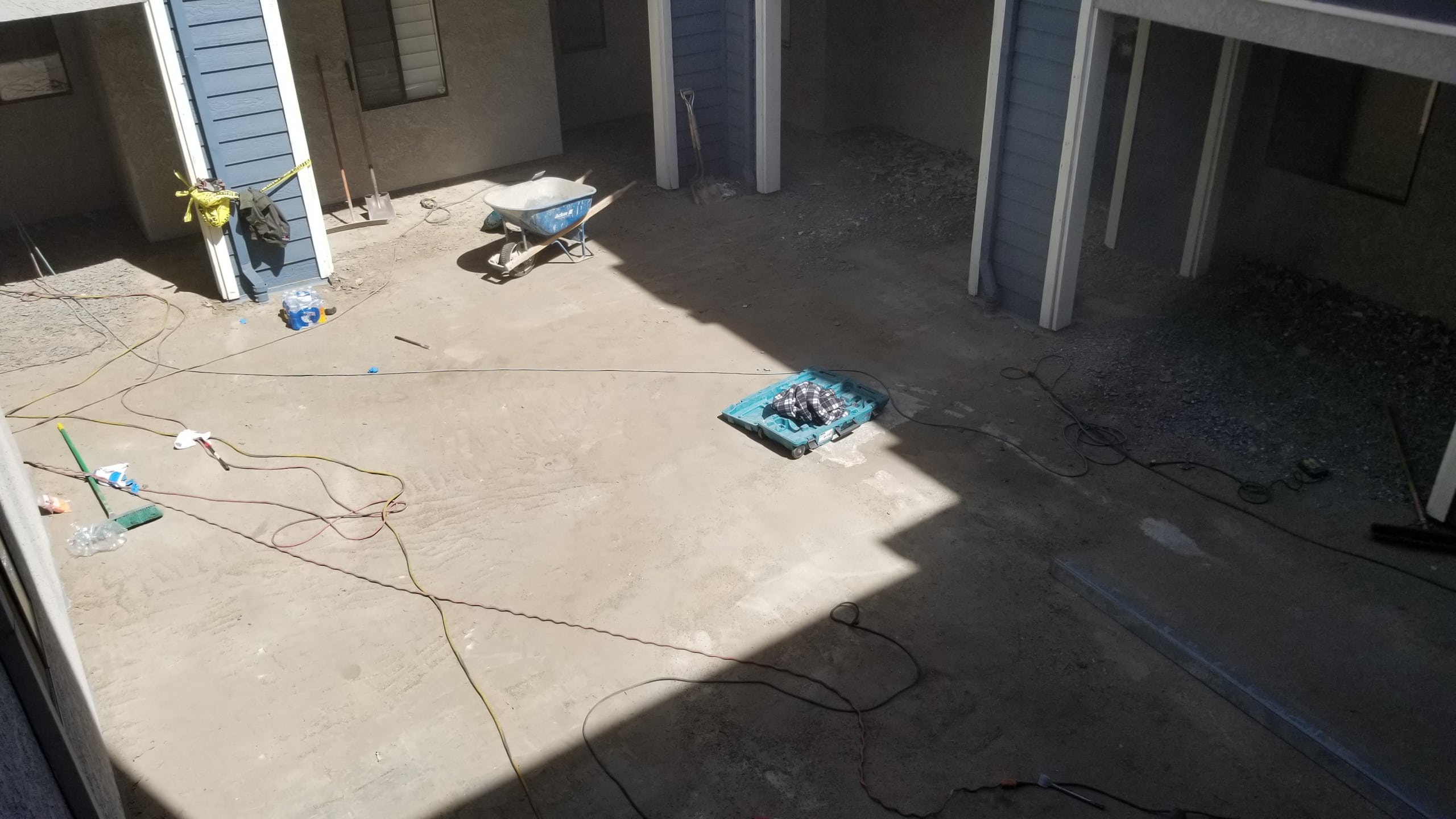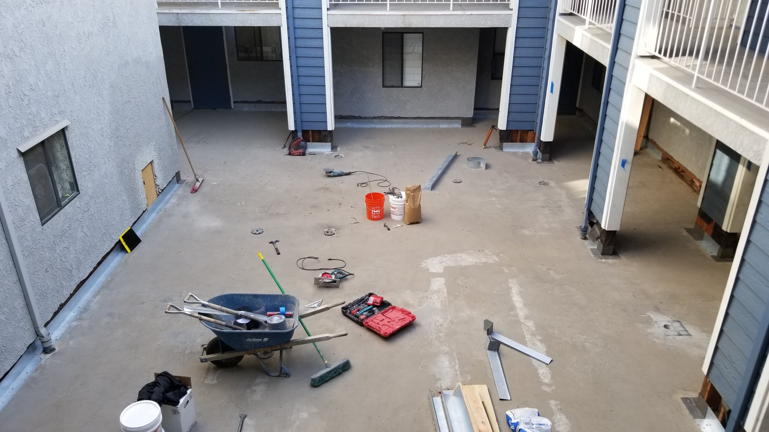 Coating and Flashing Removal: All existing podium deck coatings and perimeter stucco assemblies were removed.
