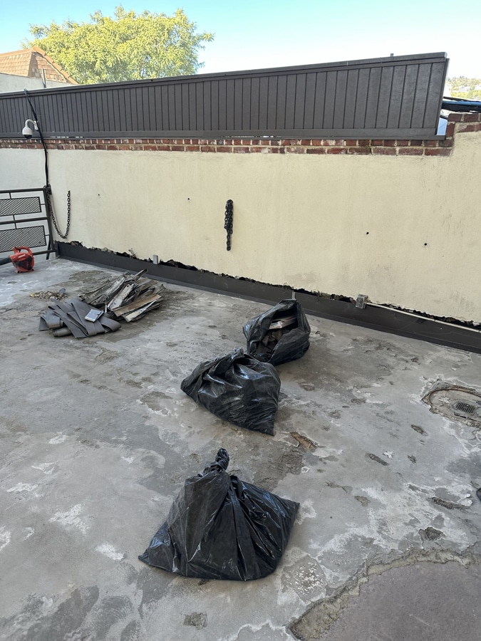 Flashing and Sloping Adjustments: New perimeter sheet metal flashings were installed, and adjustments were made to the deck’s slope and pitch to improve water flow and prevent future accumulation.