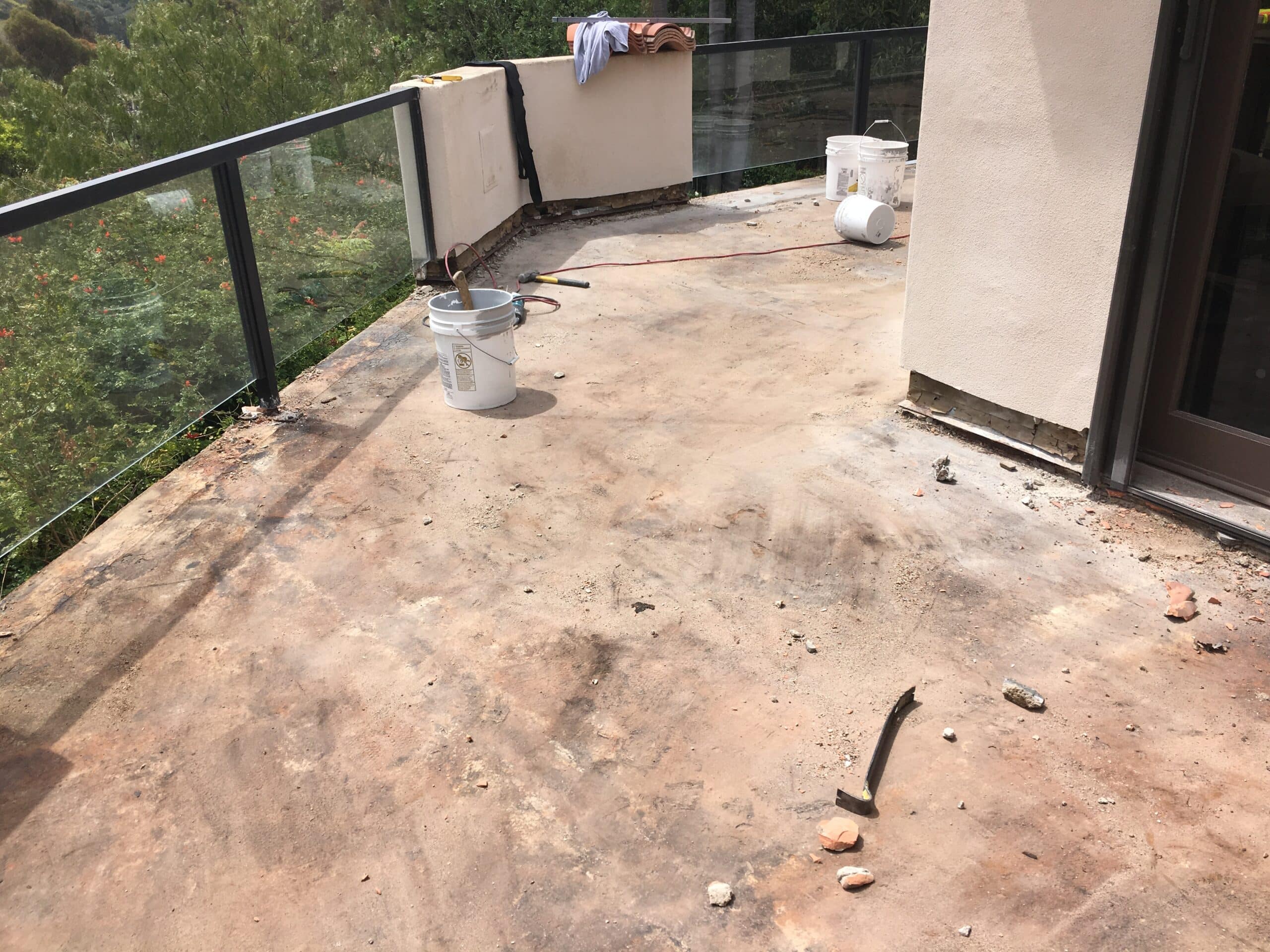 A major challenge was the removal of the tile assembly and the extensively damaged plywood substrate, which required precise demolition to maintain structural safety. Additionally, inadequate sloping had previously allowed water pooling, exacerbating the damage.