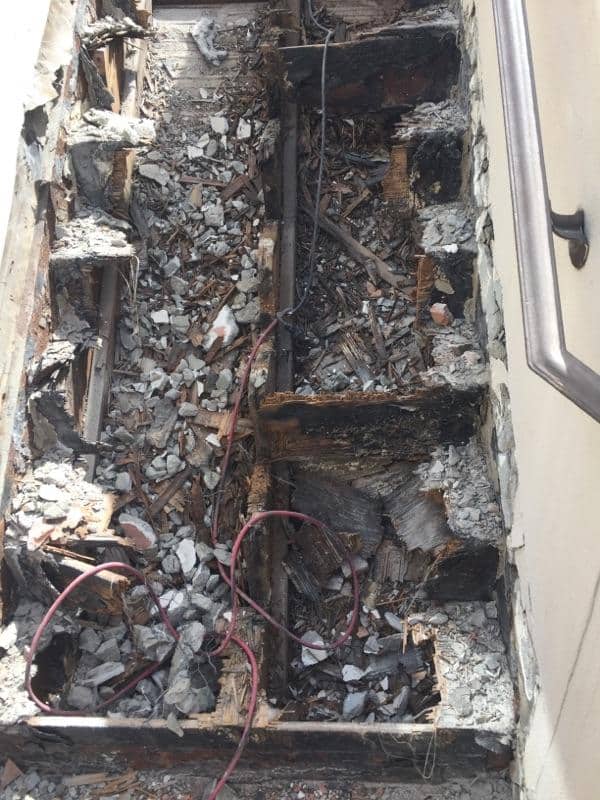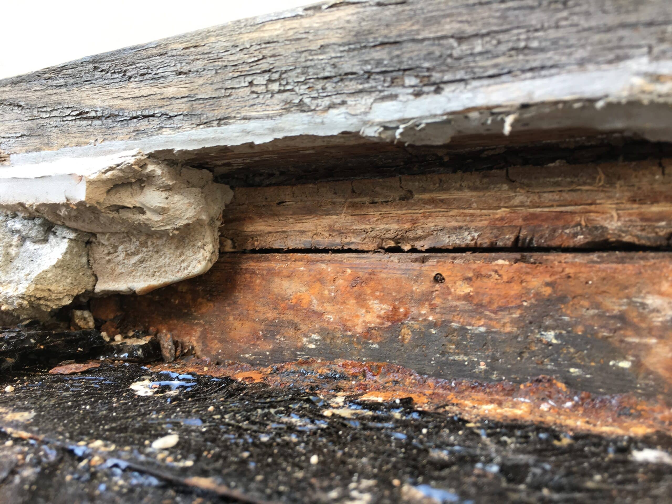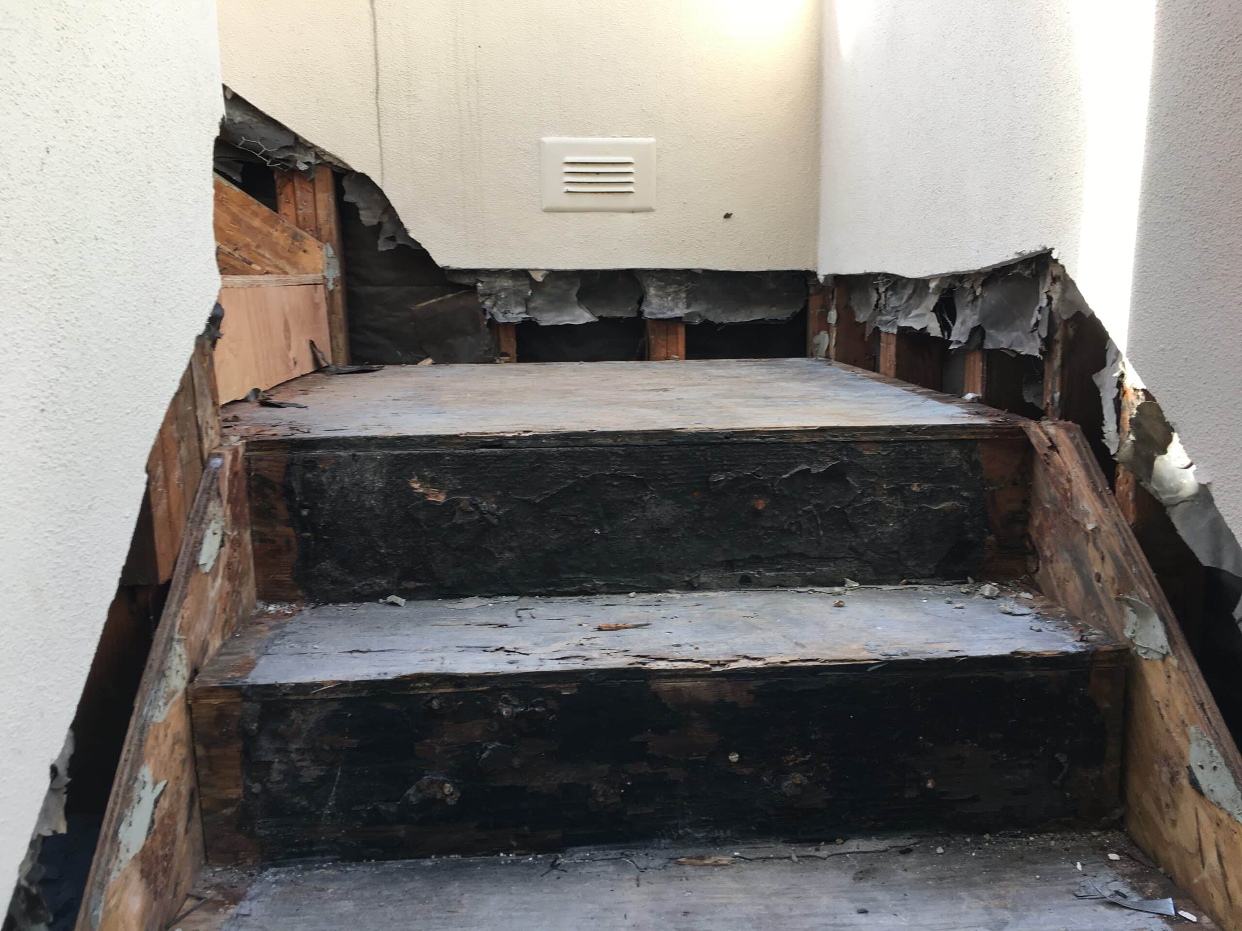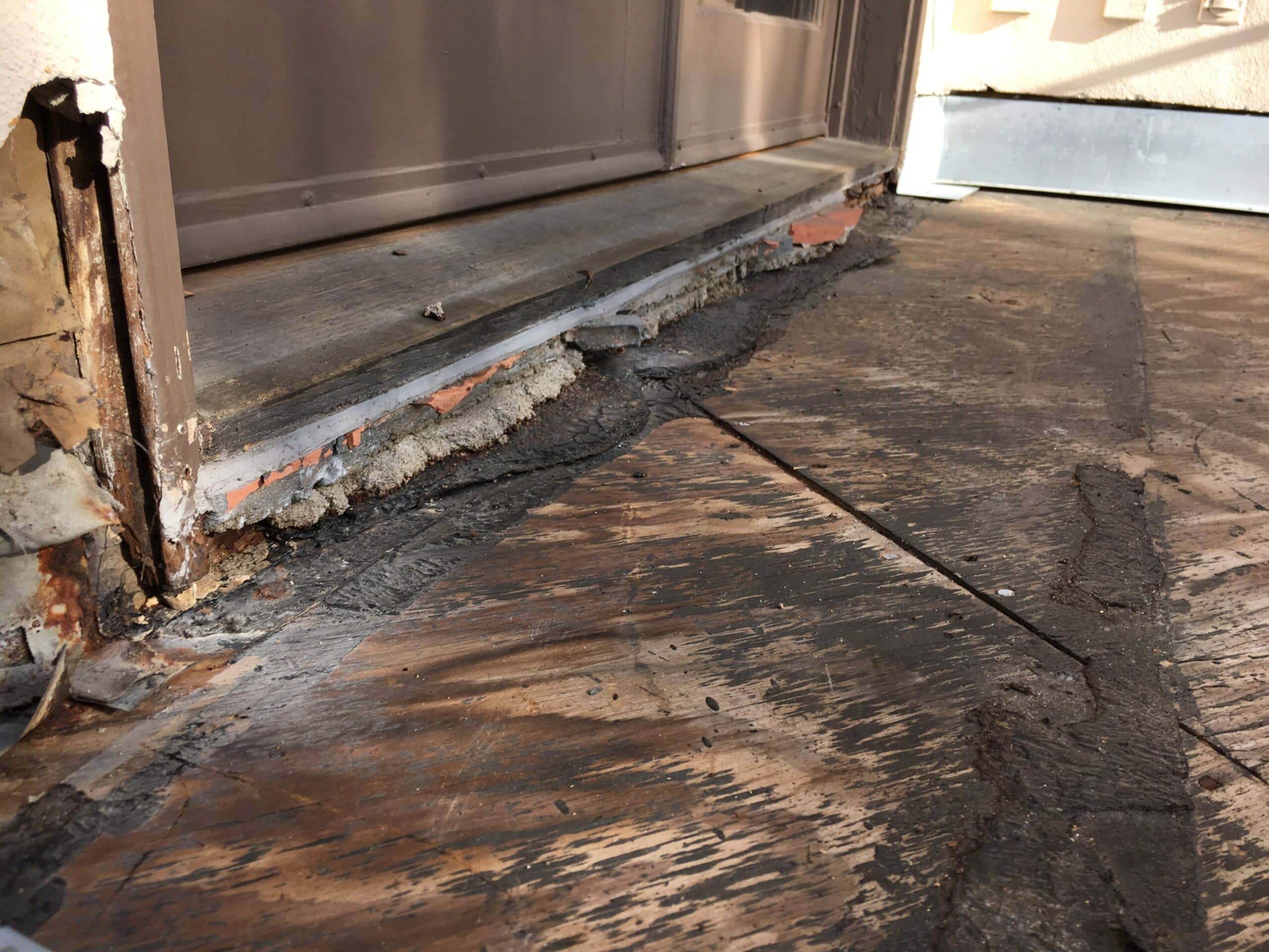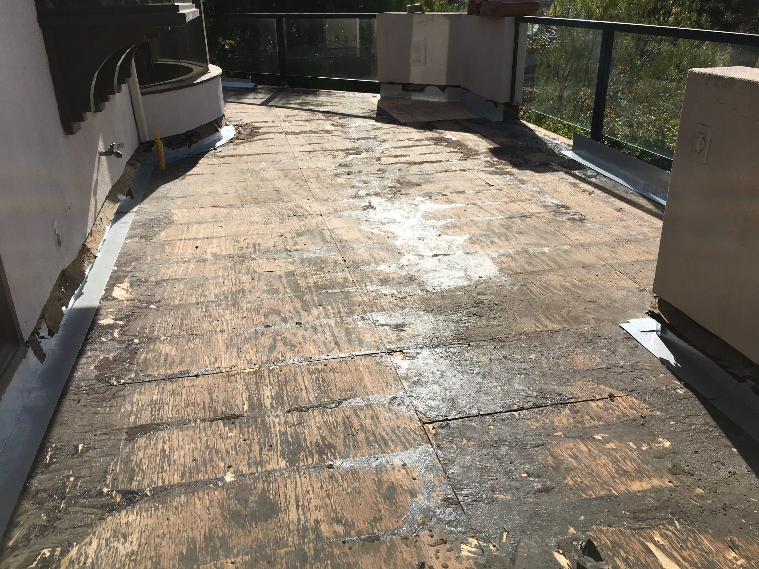 Demolition and Removal: All tiles and the damaged plywood substrate were removed to prepare for a comprehensive restoration.