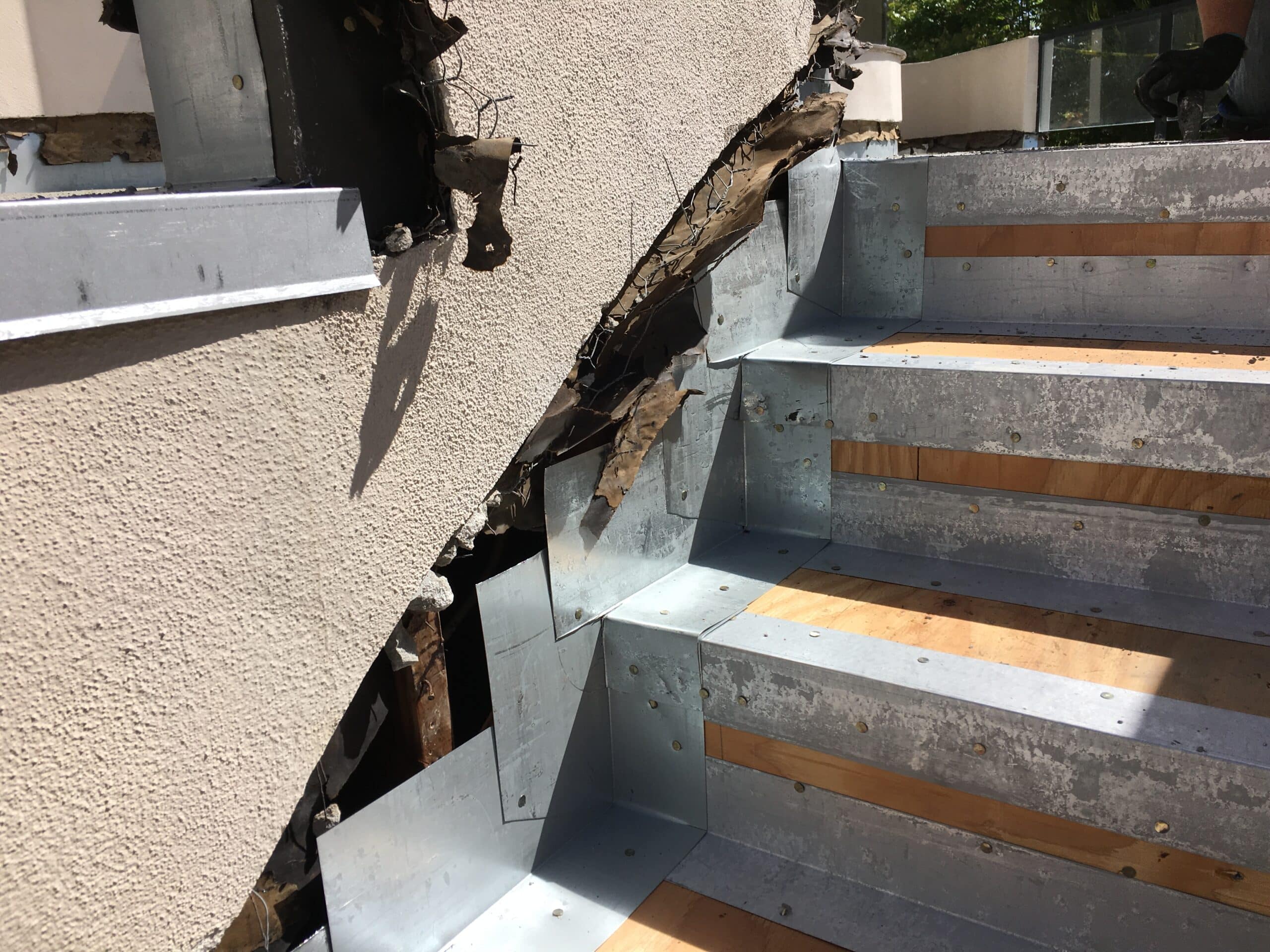 Flashing Replacement: Perimeter sheet metal flashing assemblies were replaced, including the installation of custom pans at door openings to prevent future leaks.